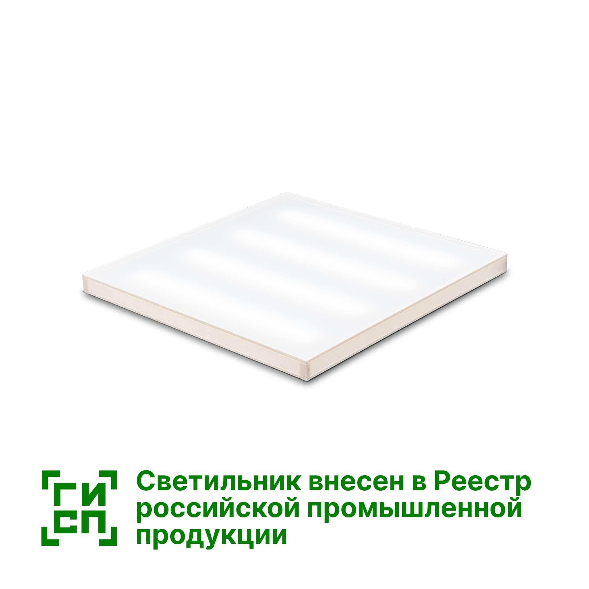 Классификатор строительных ресурсов: 20.3.03.07-0091. Светильник светодиодный потолочный накладной для общественных зданий, IP40, УХЛ4, рассеиватель полистирол, корпус пластиковый, кривая силы света косинусная, световой поток 4200-4600 лм, цветовая температура 3000-5000 К, размеры светильника 595х595 мм, мощность 30 Вт. GM А30-25-29-СМ-40-L00-V пластик с декоративной накладкой.